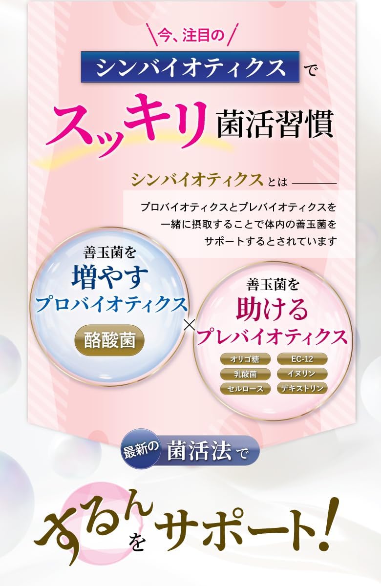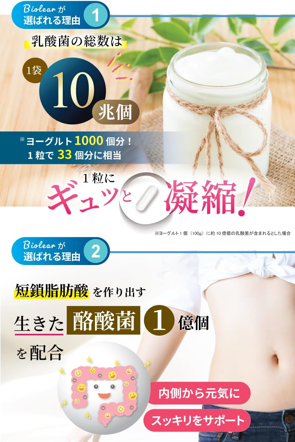 乳酸菌は23種10兆個、生きた酪酸菌も1億個配合し、あなたの腸活をしっかりサポートします。