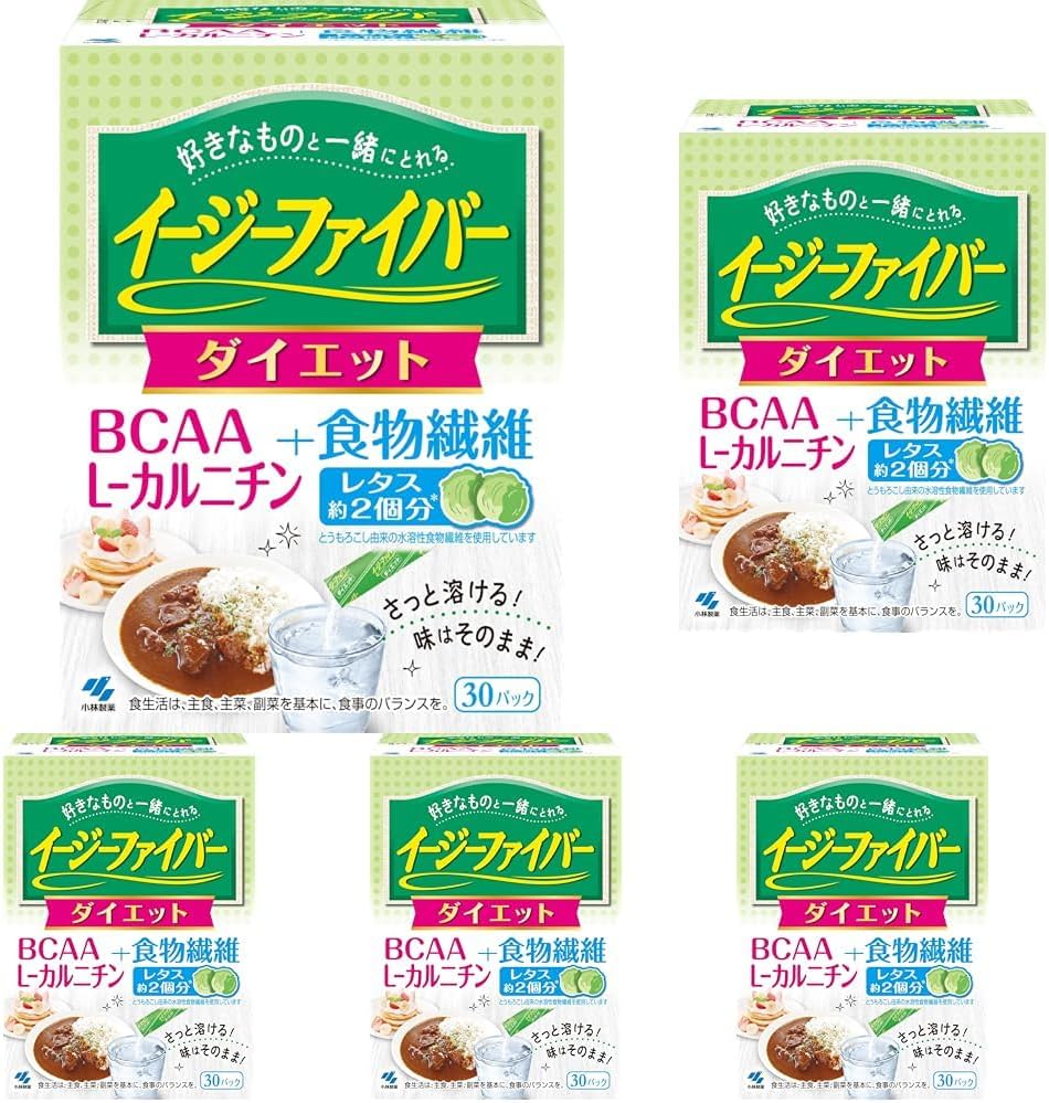 商品紹介 イージーファイバーで、いつもの食事に食物繊維をプラス!パウダーをお好きなものにさっと溶かして混ぜるだけで、食生活で不足しがちな食物繊維を手軽に補うことができます。ほとんど無味・無臭なので、お茶やジュースなどにいれても、味や香りを変えず、固まることなくさっと溶けます。イージーファイバートクホは、特定保健用食品(トクホ)です。 原材料・成分 難消化性デキストリン <成分分析表><栄養成分表示:製品1パック(5.2g)あたり>熱量 : 4.9~7.5kcalたんぱく質 : 0g脂質 : 0g 炭水化物:4.6g(糖質:0~0.78g、食物繊維:4.2g)食塩相当量0 ~ 0.00086g関与成分 : 難消化性デキストリン(食物繊維として) 4.2g 使用方法 <一日摂取目安量>1日当たり1パックを目安にお召し上がりください。 安全警告 この説明書きをよく読み保管しておいてください。<摂取上の注意>一度に大量に摂りすぎると、おなかがゆるくなることがあります。1日の摂取量を守ってください。●お子さまや妊娠・授乳期の方にもお召し上がりいただけますが、飲み過ぎるとおなかがゆるくなることがありますので、摂取量に充分注意してください。●水などの透明な飲み物に入れると、少し黄色くなりますが、品質に問題はありません。●まれに食物繊維の焦げ付きによって茶色い粉が見られることがありますが、品質に問題はありません。●本品は日本国内で加工・包装・品質管理された製品です。 ご注意(免責)>必ずお読みください ※パッケージは予告なく変更されることがあります。 続きを見る