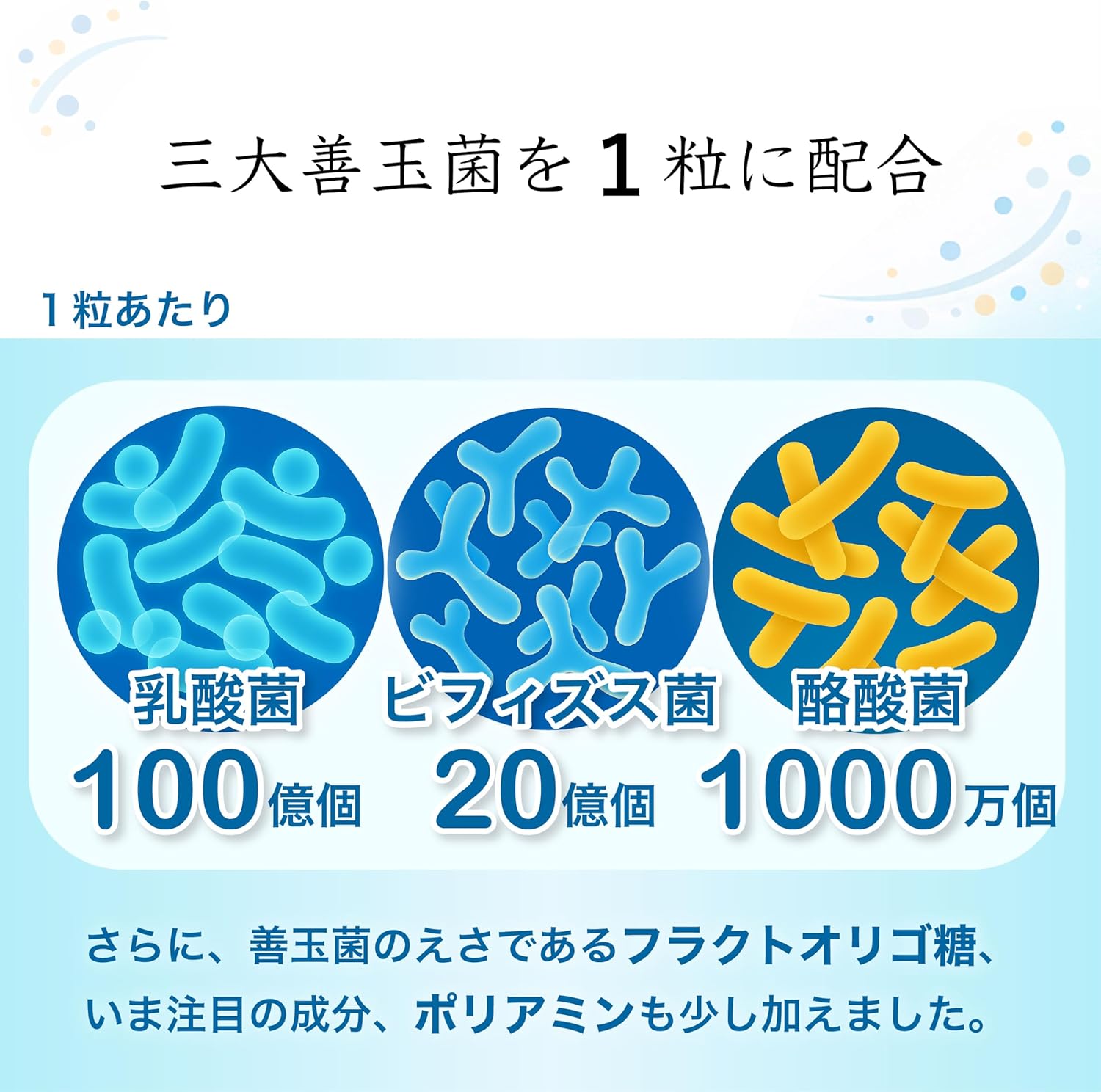 ビフィズス菌、乳酸菌、酪酸菌、ポリアミン、フラクトオリゴ糖、デキストリン