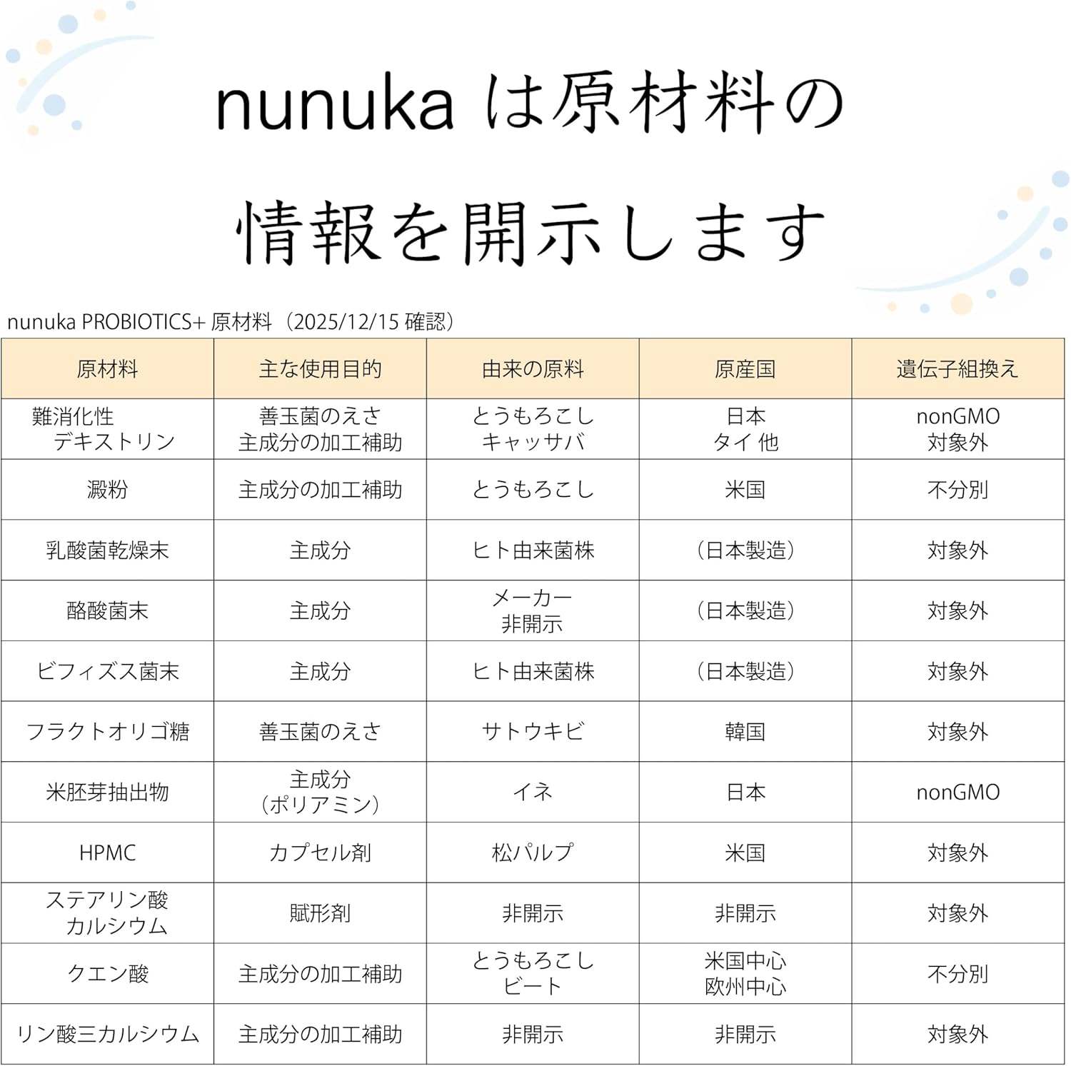 原材料名・表示について