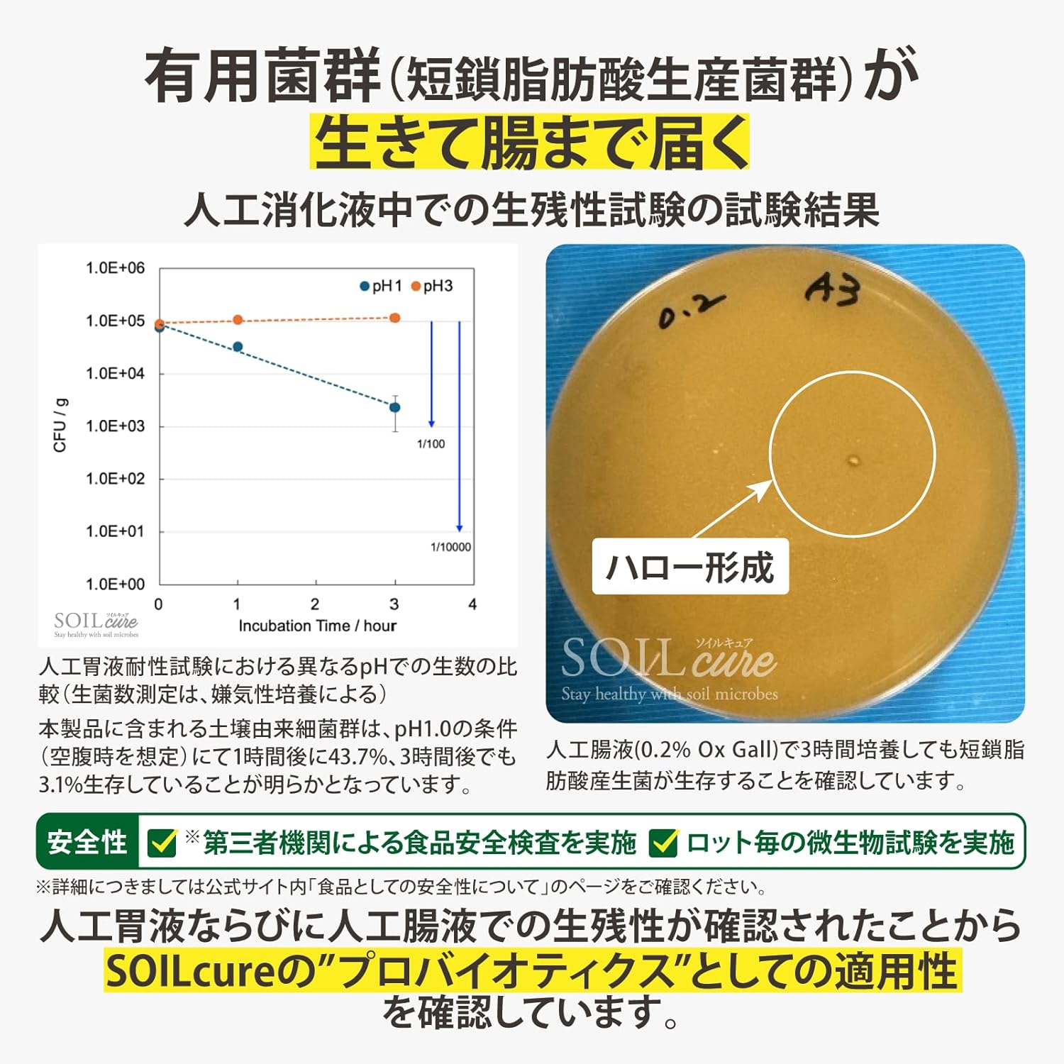 【土壌細菌群の多様性に着目したプロバイオティクスサプリメント「SOILcure(ソイルキュア)」】 SOILcureは「SOIL=土壌」由来の菌群のはたらきで現代人の不調を「cure=元の状態にする,または状態を進行させないようにする」こ…