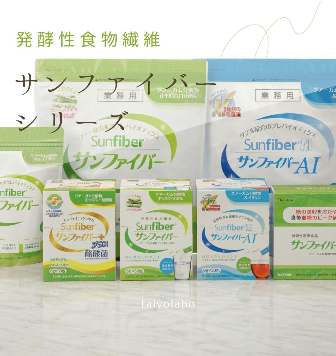 サンファイバーは100%グアー豆から生まれた体にやさしい水溶性食物繊維です。飲み物や料理の味を変えないので毎日飽きずに続けれます。数ある食物繊維の中でも善玉菌のエサになりやすい高発酵性のプレバイオティクスです。