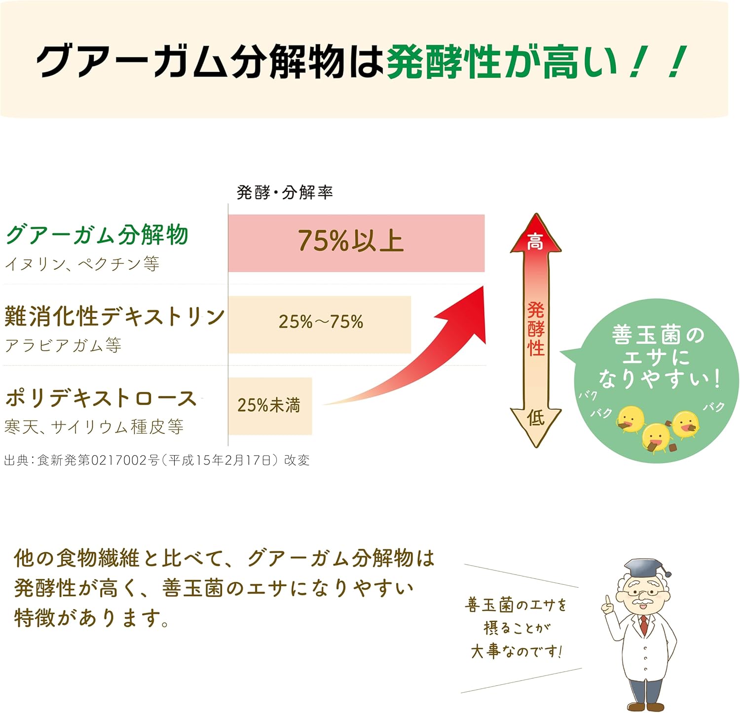 グアーガム分解物、酪酸菌末